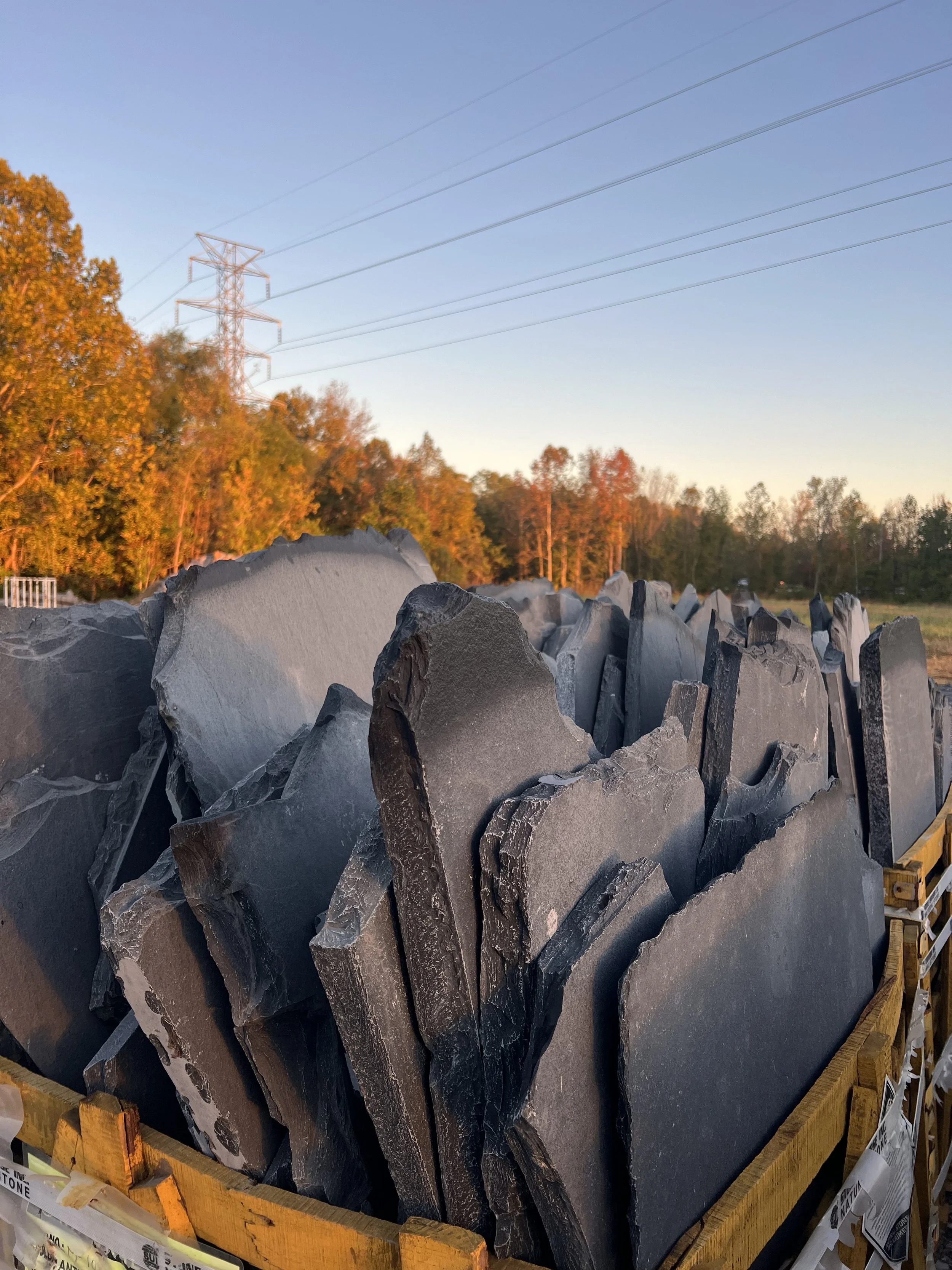 Dark, dense stone with deep purple and charcoal tones. Ideal for bold, durable landscaping featuring three sizes